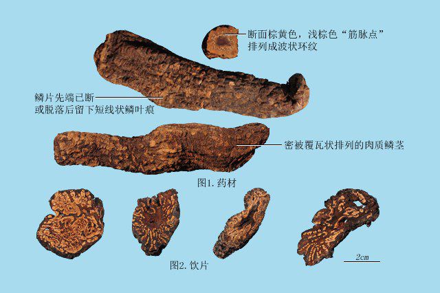 药名:伸筋草(shēn jīn cǎo)性状:干燥根茎略弯曲,呈结节状,上面具...