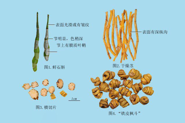药名:石斛(shí hú)性状:(一)金釵石斛:茎中、下部扁圆柱形,向上稍...