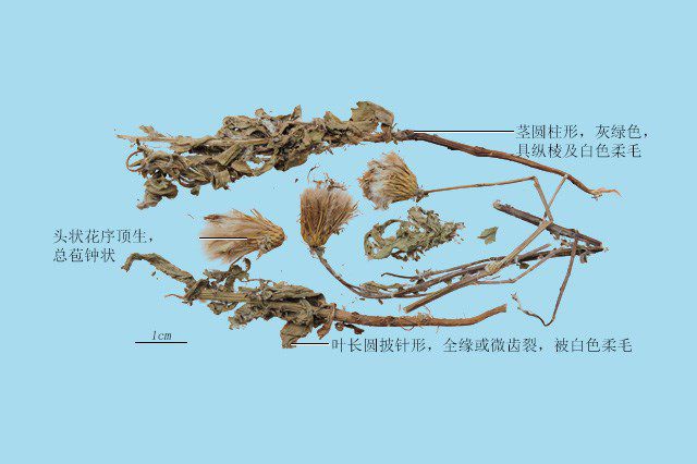 药名:天山雪莲(tiān shān xuě lián)性状:本品茎呈圆柱形,长2~48cm...